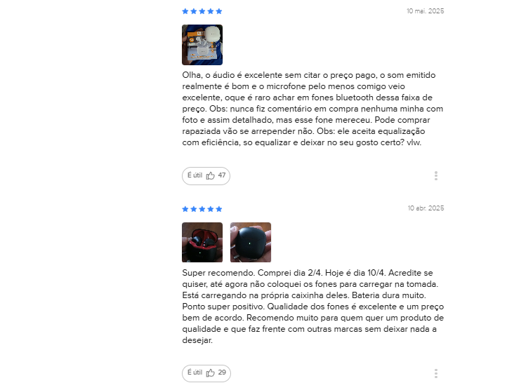 • Design in-ear ergonômico: Conforto e isolamento acústico eficaz.