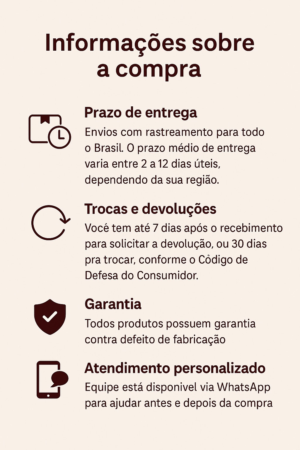 6. Não trocamos por mal uso, não trocamos por danos feito por água, não trocamos sem embalagem original do produto, não trocamos se não tiver com selo..