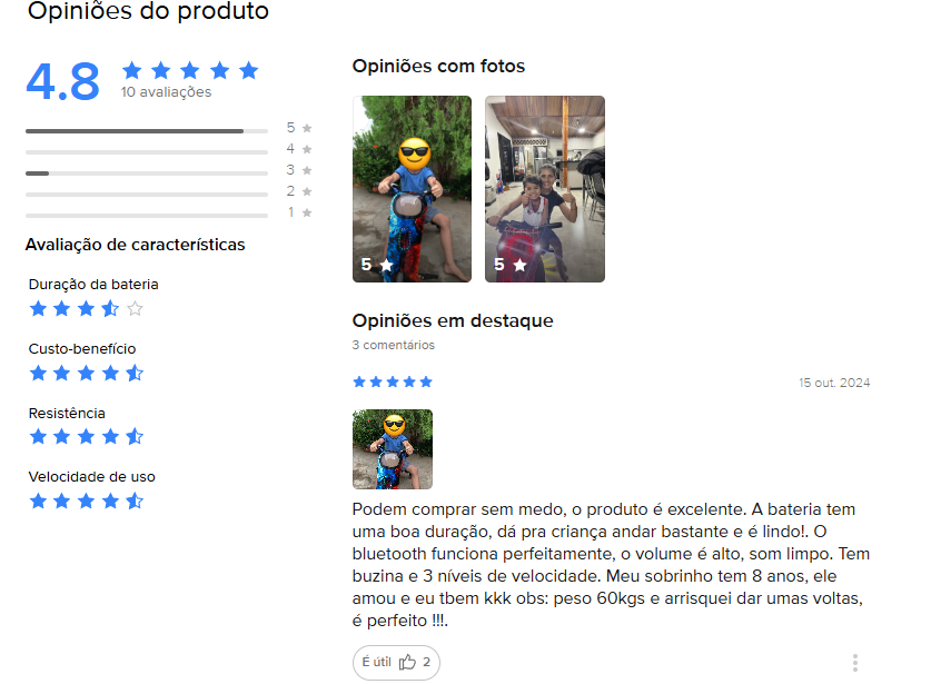• Conectividade Bluetooth: Permite ouvir músicas diretamente do celular, tornando cada passeio ainda mais animado.